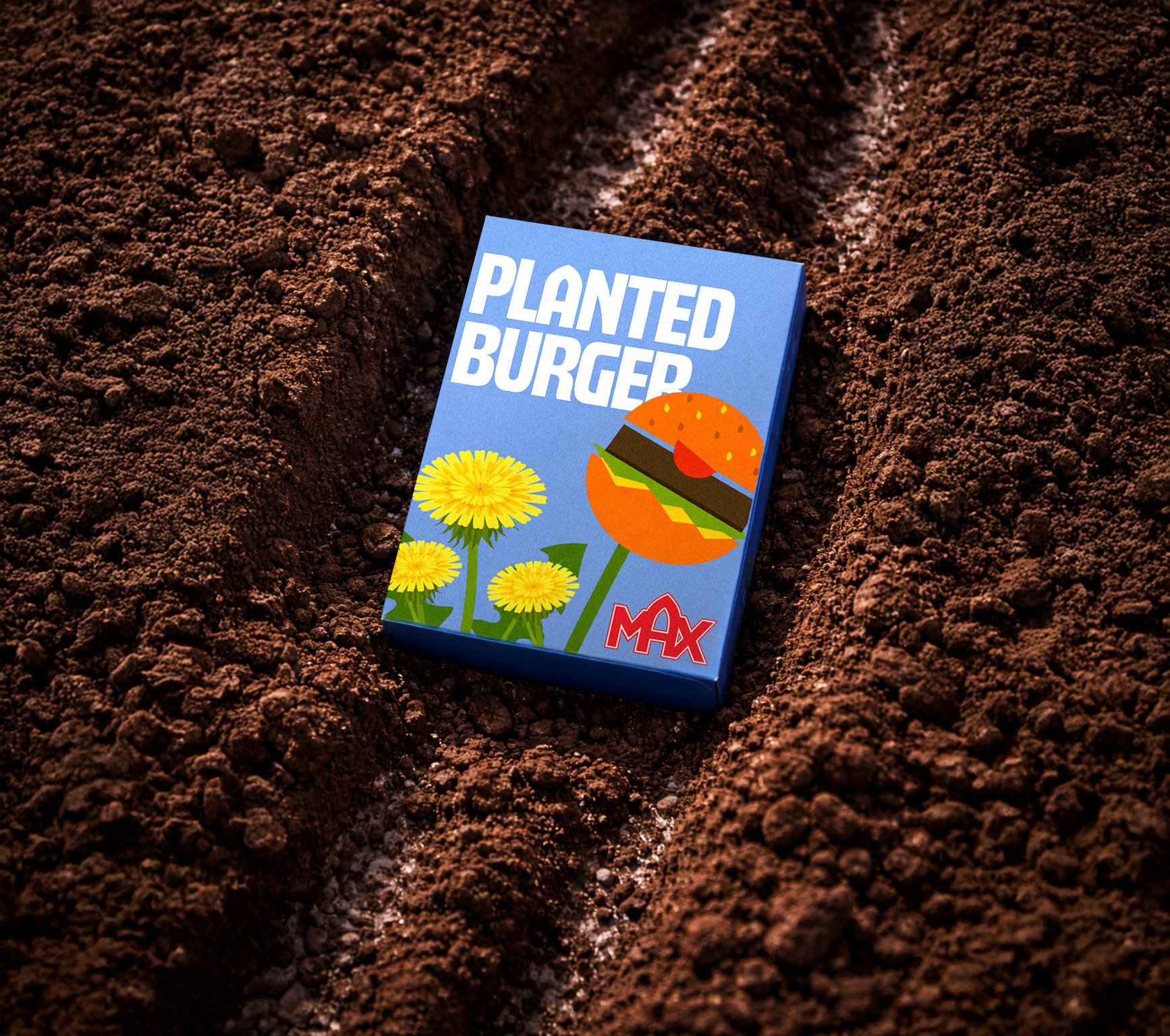 Våren 2026 kan vi äntligen presentera nyheten MAX Planted Burger. Den nya burgaren är egentligen ett odlingskit med tre lättodlade och växtbaserade ingredienser: bönor, rödbeta och morot.